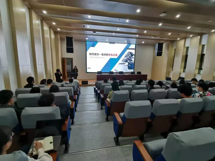 10月24日,学校党委宣传部庞伟红老师根据个人的工作经验,从“新闻基础知识、如何抓取新闻点、学生写稿过程中出现的问题、如何撰写合格的消息和通讯”四个方面为学生骨干们进行新闻写作技巧培训。同时,庞老师通过列举事例,一一纠正了学生骨干的稿件中经常出现的问题,如小题大做、标题缺主语口语化、导语不突出不简洁和内容抓不住重点,使在场的学生骨干们收获颇丰